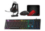 Mouse gaming 8000 DPI, 6 buttons, 4-color LED, Huano switches + software.Keyboard 104 keys, RGB rainbow, 6-key anti-ghosting, rubber dome.HQ53 headset 50mm, noise-cancel mic, red LED; AC304 stand weighted anti-slip design.