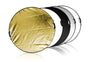 5-in-1 Collapsible Reflector is versatile in the field and studio, providing shadow-brightness detail on your subject, using available or studio lighting. It starts out as a translucent white disc, perfect for softening direct sun or undiffused lights. Use the removable, reversible zippered sleeve to reflect light into shadow areas of your subject. Your choice of color (silver, gold, white, gold-silver mix) will be determined by lighting conditions and your personal preference