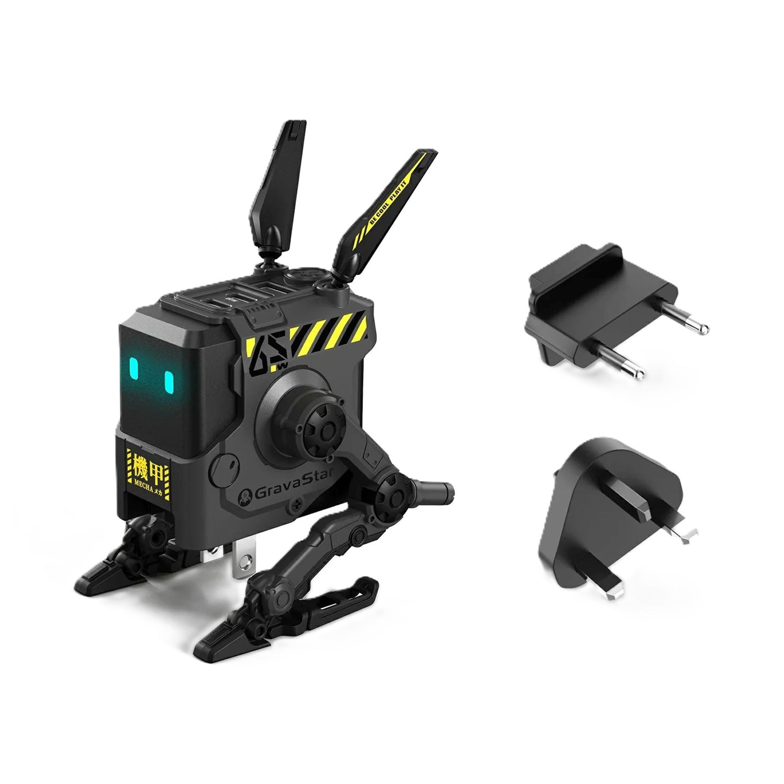 GravaStar Alpha65 GaN 65W Wall Charger Robot – 3 USB Ports , Dual USB-C PD & USB-A, Mecha Protection, Foldable Design, 110V-240V Input, US/EU/UK Plugs, for iPhone, MacBook, iPad, Galaxy S23/S24, Steam Deck | 65W Charcoal Gray